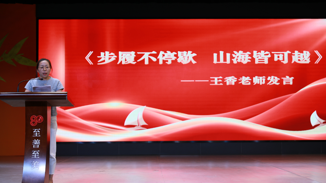 教师代表王淼老师和王香老师为大家讲述了学校师生参加全国八艺征程上的感人故事以及班级管理和家校育人背后的点滴温暖。她们用平凡的故事,传递出教育的伟力。