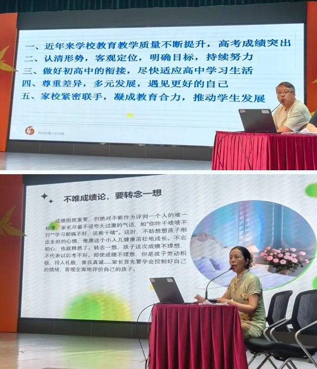 教学处马杰主任针对高一知识难点、学习方法、时间规划等进行学习方法指导。德育处周小燕副主任以“爱的相互奔赴”为题就如何有效改善亲子关系进行家庭教育指导。年级组长王瑜老师分享了开学以来年级组的整体风貌、学生的进步情况以及年级常规工作等。