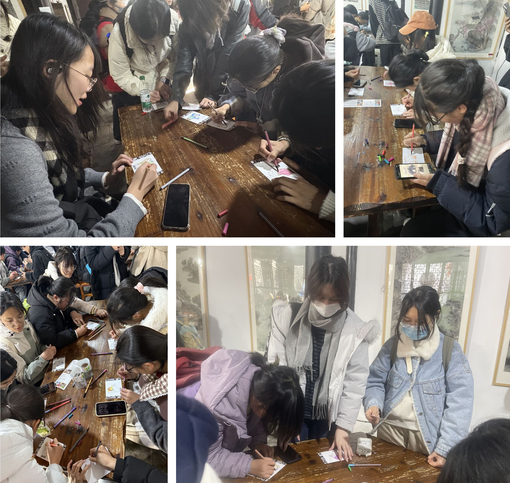 沈宅,是甪直古镇保存完好的豪华宅第,甪直教育家沈柏寒先生的故居。建筑布局有亦仕、亦商,前店、后宅,左坊、右铺的特色。同学们在沈宅府邸制作传承非遗的水乡服饰明信片,了解非遗的水乡妇女服饰文化,加深了对水乡服饰由来及使用印象。