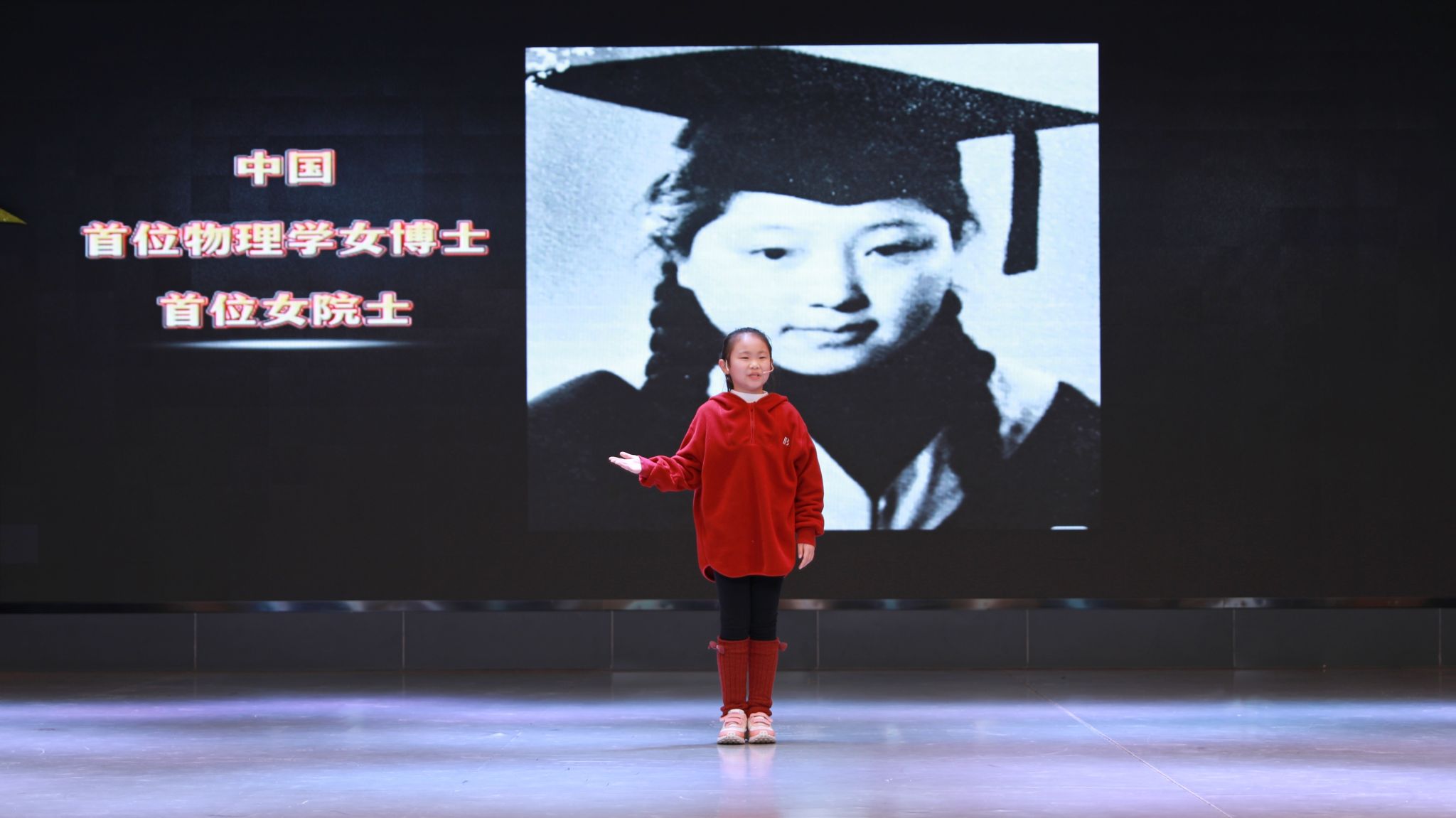 首先,来自工业园区星洲小学的陈筱贝同学以《伟大的偶像:顾诵芬》为题,将“歼-8之父”顾诵芬院士的故事娓娓道来。因7岁目睹日军轰炸北平,顾诵芬便立下“为国设计飞机”的誓言,此后70年扎根航空领域,让中国拥有了自己的高空高速歼击机。从少年立志到航空巨匠,顾诵芬与中国“雄鹰”一同起飞,守护着祖国的蓝天。与此同时,怀着“科学救国”的初心的女科学家何泽慧,在另一片“看不见的战场”上为国奋战。相城实验小学的李歆瑶同学以《中国的居里夫人——何泽慧》为题,讲述了何泽慧院士的非凡人生。她在核物理领域天赋过人,成为德国弹道学专业首位外国女学生。面对国外优渥条件,她毅然回国,在旧货店搜罗器材、亲手搭建实验平台,于简陋环境中开创中国核物理研究新格局,用天赋扛起了国防建设的重任。