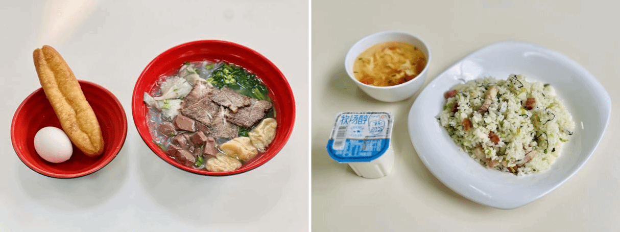 徐静怡:学校的用餐体验非常满意,有六种不同的搭配供我们选择,我最喜欢盖浇饭,每天不重样,而且能吃上两荤一素,还有卤蛋,并配有水果或酸奶等,菜品种类丰富。尤其是咖喱鸡丁配黑椒猪排的盖浇饭,我最喜欢!
