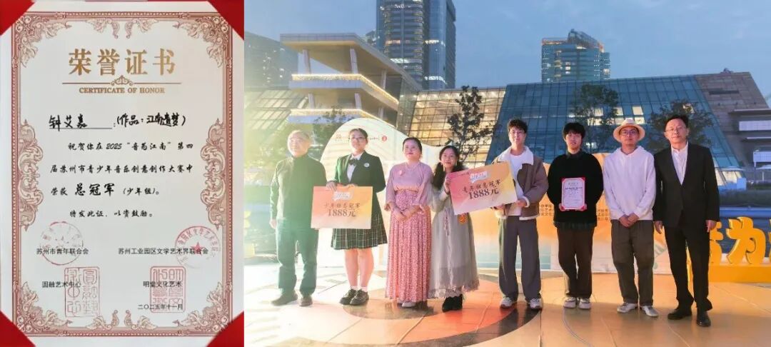 我校艺术教育在多项赛事中齐获佳绩。在苏州市教育局举办的“三独”比赛中,我校8名参赛选手全部斩获一等奖。在第十七届苏州市“普通话、苏州方言、英语口语”比赛中斩获大市团体高中组特等奖第一名及个人特等奖的骄人成绩。在第四届“音为江南”苏州市青少年原创音乐嘉年华总决赛中我校学生勇夺少年组总冠军。