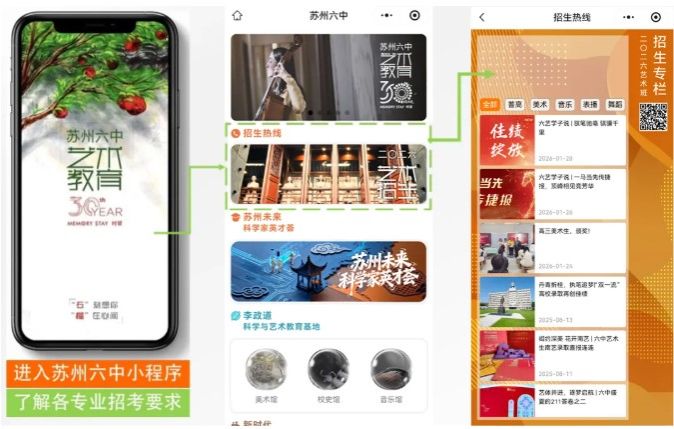 二维码在苏州六中微信公众号、小程序、招生宣传资料和网站中均有提供。(报名后请及时接受学校企业微信邀请,等待报名审核结果通知。)