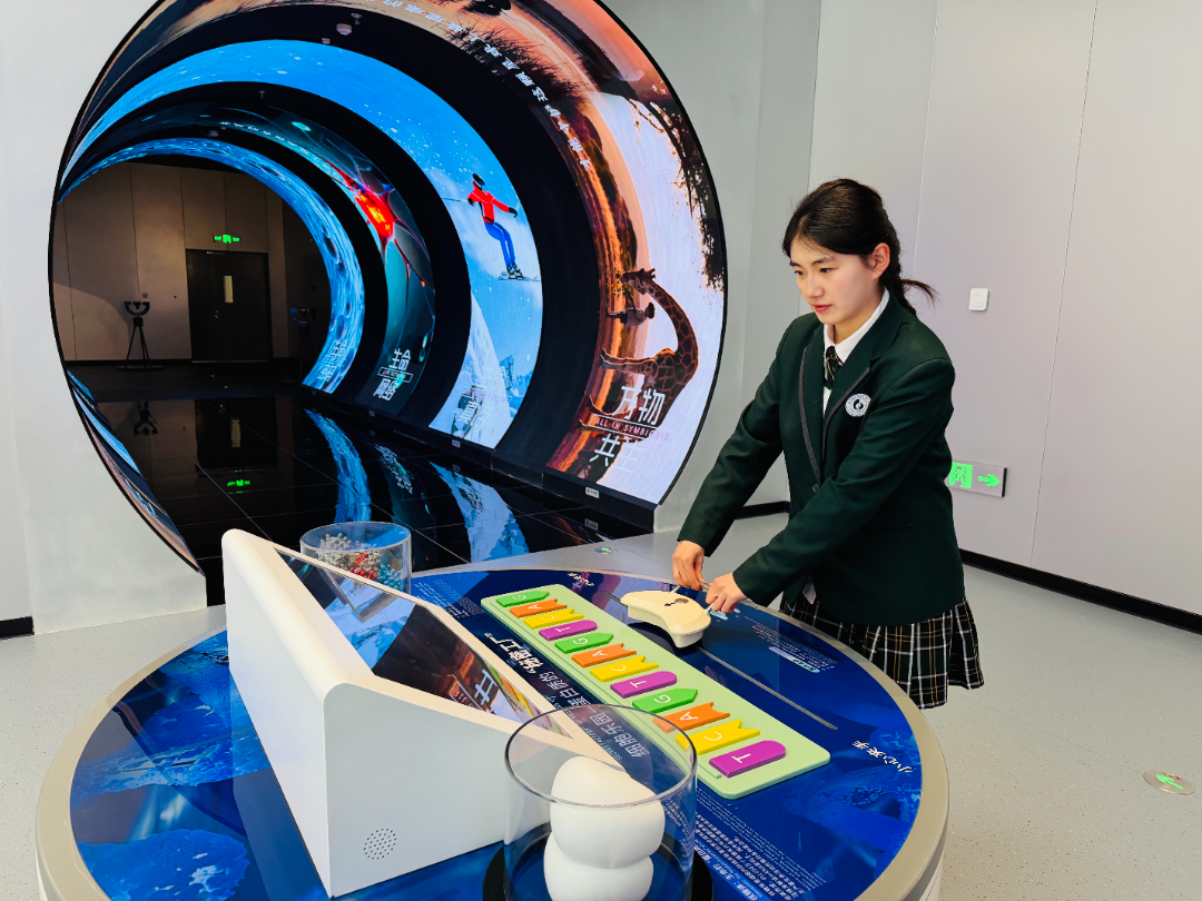 冯思怡直奔明星项目“意念花世界”。戴上脑电捕捉装置,集中注意力——眼前的花朵缓缓绽放;一走神,花朵又慢慢合拢。“真的能感受到专注的力量!”