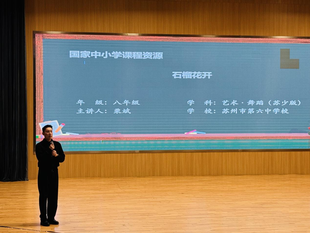 3月24日,在苏州市教育科学研究院主办,常熟市教育局教研室等承办的2026年苏州市义务教育初中舞蹈、戏剧新教材培训中,栗斌老师以舞蹈课《石榴花开》进行示范课阐述。
