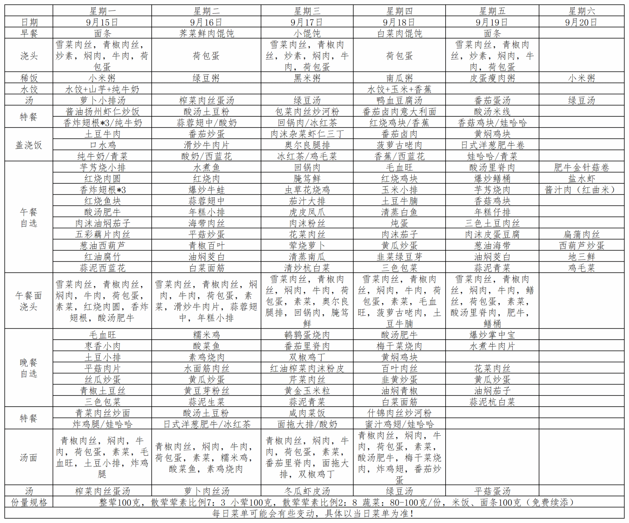 苏州市第六中学校2025.9.15-9.20菜单