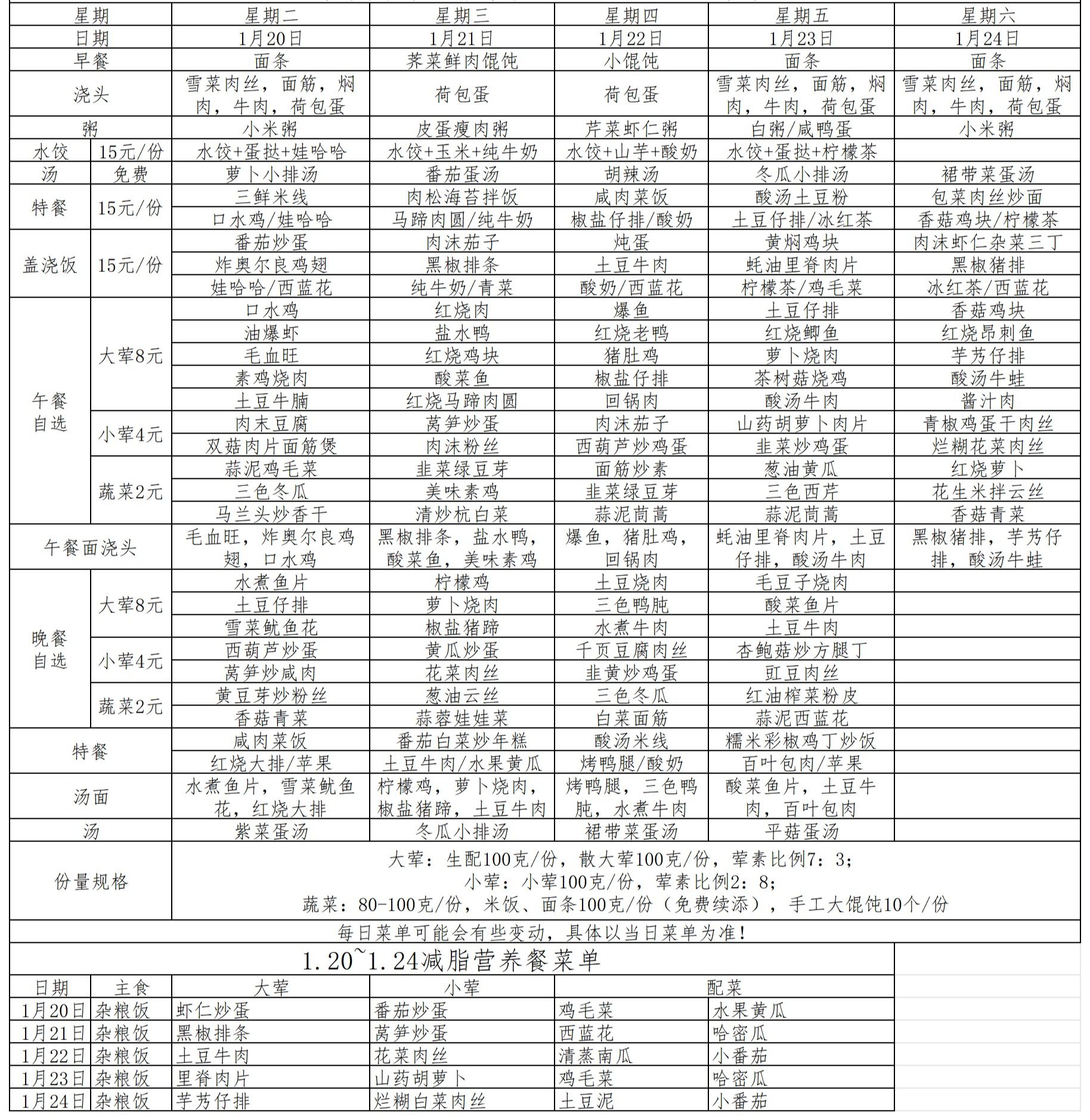 苏州市第六中学校2026.1.20-1.24菜单