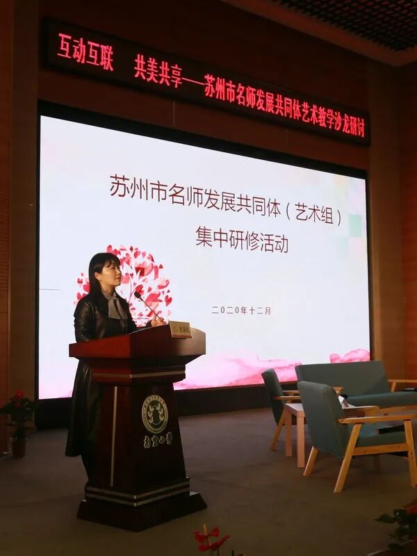 苏州市第六中学党总支副书记、副校长沈海泯主持会议,并与大家分享《从六中80周年改革发展,看近30年艺术教育创新成果》