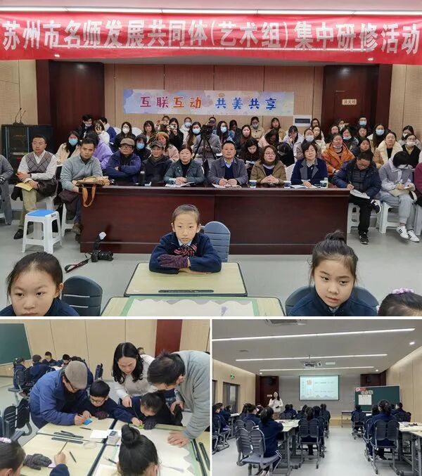 “把每节课上好,把身边的事情做好;做为艺术老师,到了学校,就要做点艺术特色出来;把最好的艺术教育波及到更多的孩子;有缘相聚,让科技与艺术完美相遇;借助团队的力量,师生人人可为;先有思想再画画,先做‘学生的学生’,先‘心甘情愿做老师’再做老师。”江苏省美术特级教师沈海泯(苏州大市艺术名师共同体主持人)、娄小明(苏州市吴江区盛泽实验小学副校长)、金华(苏州工业园区名师工作坊领军人),以及吴中区碧波实验小学副校长许雪晴、太仓市沙溪镇直塘小学校长王晓婧、常熟高新园中等专业学副校长陈梅为大家呈现了一场精彩的学校艺术特色教育沙龙研讨。