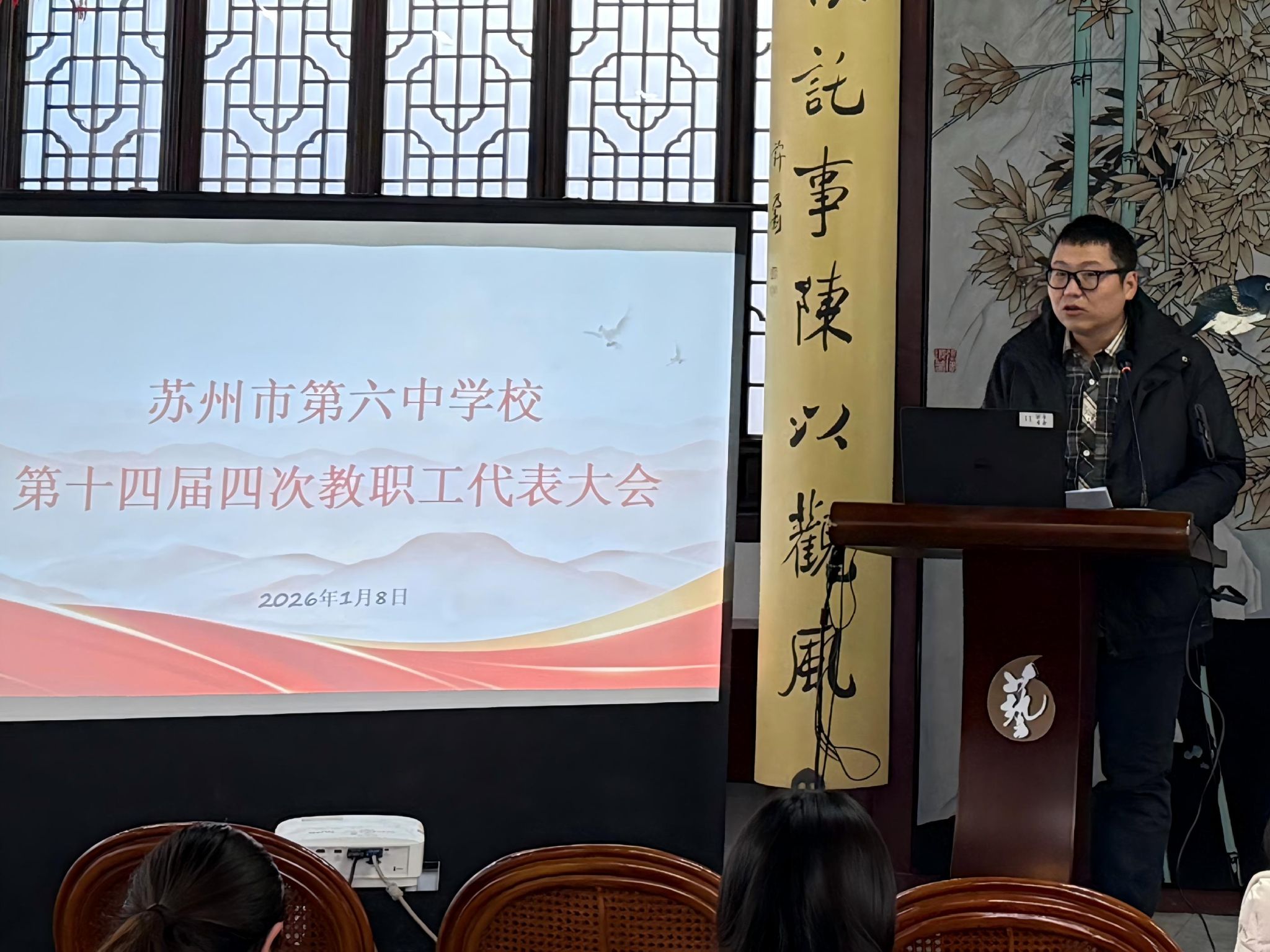 2026年1月8日,苏州市第六中学校第十四届四次教职工代表大会在学校玉兰堂举行,本次大会汇聚全校教职工的智慧力量,共同促进学校科学民主决策,完善现代学校治理,凝聚办学合力,擘画学校未来发展蓝图。01群策群力,担当作为会议在庄严的国歌声中拉开序幕,来自全校各部门的正式代表及列席代表共90人齐聚一堂,共商学校发展大计。大会由丁嘉...
